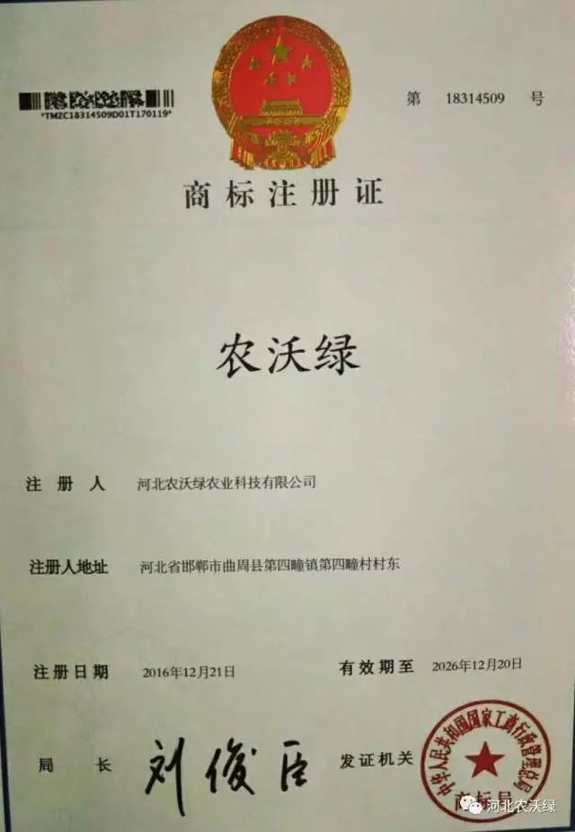 公司注冊“農(nóng)沃綠”商標(biāo),著力打造品牌產(chǎn)品,堅(jiān)持做高科技含量、質(zhì)量至上的農(nóng)用物資,服務(wù)于農(nóng)業(yè),使農(nóng)民增產(chǎn)增收。