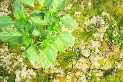 由于施肥量大,土壤中的一些可溶性鹽分會(huì)聚集在地表就像上圖一樣。地表鹽分含量高,導(dǎo)致根系生長(zhǎng)嚴(yán)重受阻,有的地塊甚至無(wú)法耕種。危害癥狀主要表現(xiàn)為植株矮化,葉色黑綠有硬化感,心葉卷曲,嫩葉及花萼部位有干尖現(xiàn)象,根變褐色以至枯死,果實(shí)生長(zhǎng)緩慢,受害嚴(yán)重的植株甚至?xí)霈F(xiàn)萎蔫、枯萎。