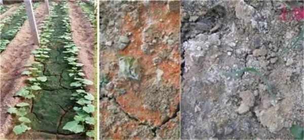 大棚土壤問(wèn)題不少,鹽害尤為嚴(yán)重。蔬菜種植行內(nèi)地表出現(xiàn)青、紅、白霜等情況是大棚土壤鹽害的直觀表現(xiàn)。