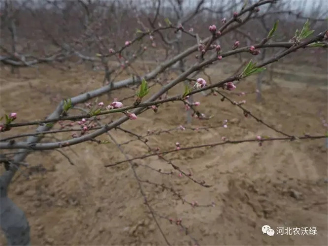 這張是施用其他牌子有機肥的,明顯可以看出花苞小,幾乎沒有抽芽,生長期要比施用農(nóng)沃綠生物有機肥的桃樹落后6-8天左右。