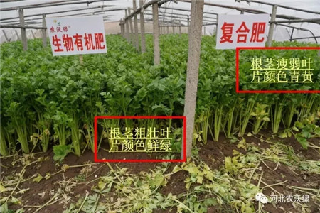 施用農(nóng)沃綠生物有機肥的芹菜,每畝增產(chǎn)3000斤以上。