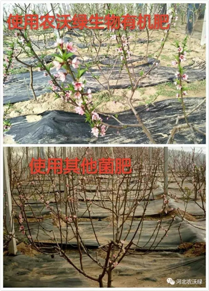 不知道大家還記不記得這張圖片,早在油桃的開花期,我們農(nóng)沃綠生物有機肥的促生長效果就有體現(xiàn)了。在同一個棚室里使用農(nóng)沃綠蚓菌多生物有機肥要比使用其他生物有機肥提早開花4-6天,抽葉也比使用其他生物有機肥的葉芽長一公分還多。