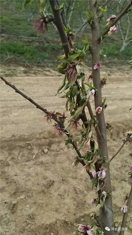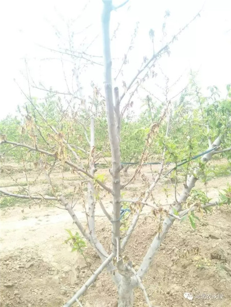 下圖是第一次灌根后又新發(fā)病的桃樹,屬于花期過后的發(fā)病,沒有及時(shí)處理。
