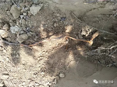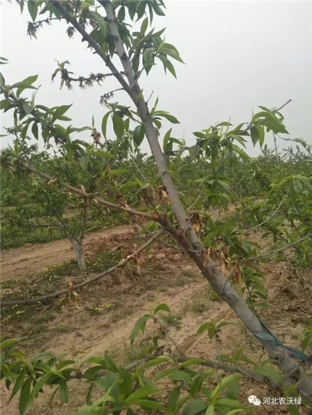 以上圖片是在今年春天立旺桃樹種植專業(yè)合作社的負(fù)責(zé)人找到我們時(shí)給我們看的照片。據(jù)了解,去年立旺桃樹種植專業(yè)合作社就因?yàn)檫@種情況出現(xiàn)了很多桃樹死棵現(xiàn)象。因此今年張社長(zhǎng)輾轉(zhuǎn)來(lái)到了我們河北農(nóng)沃綠農(nóng)業(yè)科技有限公司,尋找解決的辦法。公司農(nóng)技師在詳細(xì)了解了桃樹的病況和這兩年立旺桃樹種植專業(yè)合作社的施肥情況后采集了果園的土樣進(jìn)行了化驗(yàn),綜合分析后認(rèn)為是桃樹根腐病和流膠病等混合表現(xiàn),給出了解決方案,使用農(nóng)沃綠VT-1000菌液200倍液灌根處理。