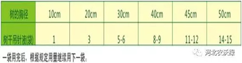 (2)、根據(jù)樹體大小適當增減用藥量,具體用量視樹勢而定,胸徑小于5cm的樹木不推薦使用。