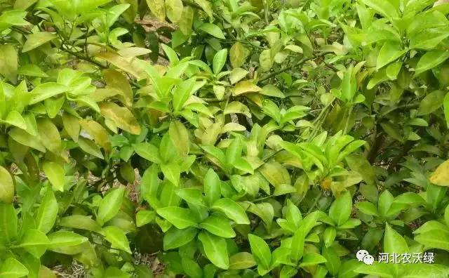 地上部主要表現(xiàn)為生長(zhǎng)緩慢、樹(shù)勢(shì)衰弱、發(fā)芽晚卻落葉早、葉小而黃(有的從春天展葉到落葉一直是黃色的),或者葉緣枯焦、黃化脫落,新梢生長(zhǎng)遲緩,難成花結(jié)實(shí),果實(shí)變小、品質(zhì)降低,嚴(yán)重時(shí)整樹(shù)枯死。