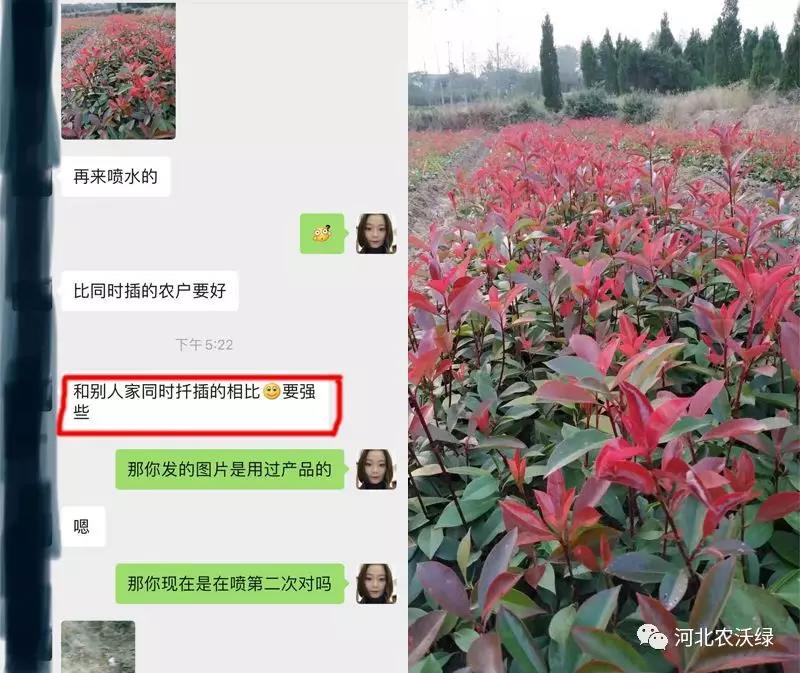 安徽滁州的客戶種植的紅葉石楠長勢偏弱,使用農(nóng)沃綠春意盎然能量液后,長勢跟其他農(nóng)戶比起來好很多了,看著生機勃發(fā),很是好看。(看下圖)