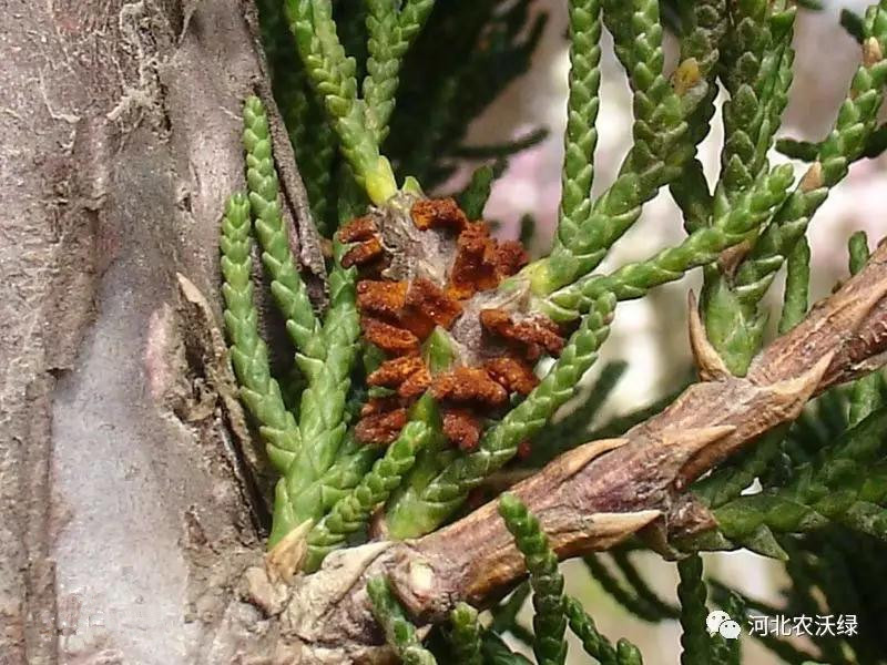 檜柏銹病又稱梨膠銹病,是一種與蘋果、梨樹、海棠等轉(zhuǎn)主寄生的病害。除對(duì)檜柏、側(cè)柏造成危害外,它還直接導(dǎo)致多種果樹受害、減產(chǎn),如蘋果、海棠形成僵果,山楂不但形成僵果,而且果實(shí)體表也帶2厘米至3厘米的菌絲。