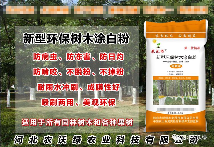 樹體涂白:涂抹農(nóng)沃綠大樹涂白粉,產(chǎn)品四效合一,防止廣泛,不僅防凍效果好,而且還能防啃咬,防病蟲,防日灼等作用。對(duì)樹體及土壤有保護(hù)作用。