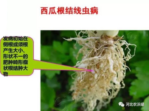據(jù)了解,西瓜根線蟲危害西瓜的根部,以側(cè)根和須根為主。它在侵染時(shí)會(huì)用鋒利的口針刺穿根系,吸取當(dāng)中的營(yíng)養(yǎng)。此外,西瓜根線蟲在穿刺根部的同時(shí),還會(huì)分泌出唾液,唾液在進(jìn)入根部組織后會(huì)產(chǎn)生化學(xué)作用,會(huì)使側(cè)根和須根長(zhǎng)出大小不等的瘤狀物,也就是西瓜根結(jié)。這些瘤狀物、根結(jié)會(huì)阻礙根系吸收肥料和水分,由此就出現(xiàn)了施肥不見效的現(xiàn)象。