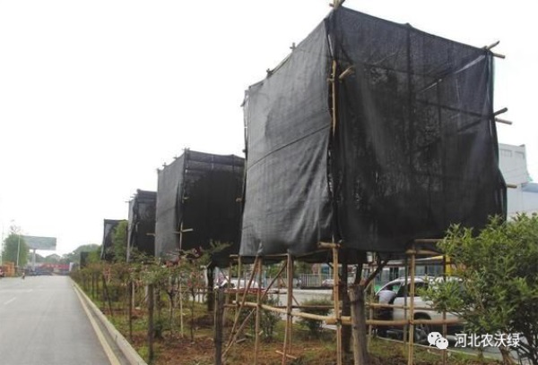 2、對于易發(fā)生日灼的苗木,及時(shí)搭設(shè)遮陰網(wǎng)。