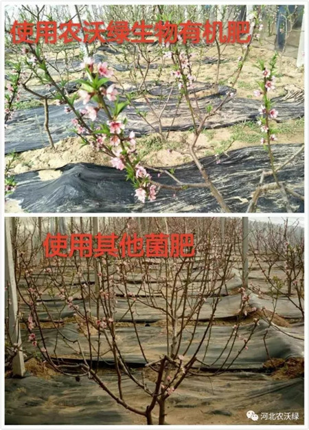下面是農(nóng)沃綠蚓菌多生物有機(jī)肥在陸地桃樹施用效果對比圖,施用農(nóng)沃綠蚓菌多生物有機(jī)肥比使用其他有機(jī)肥的花期要提前6-8天左右,花朵更多顏色艷麗,長勢更均勻。