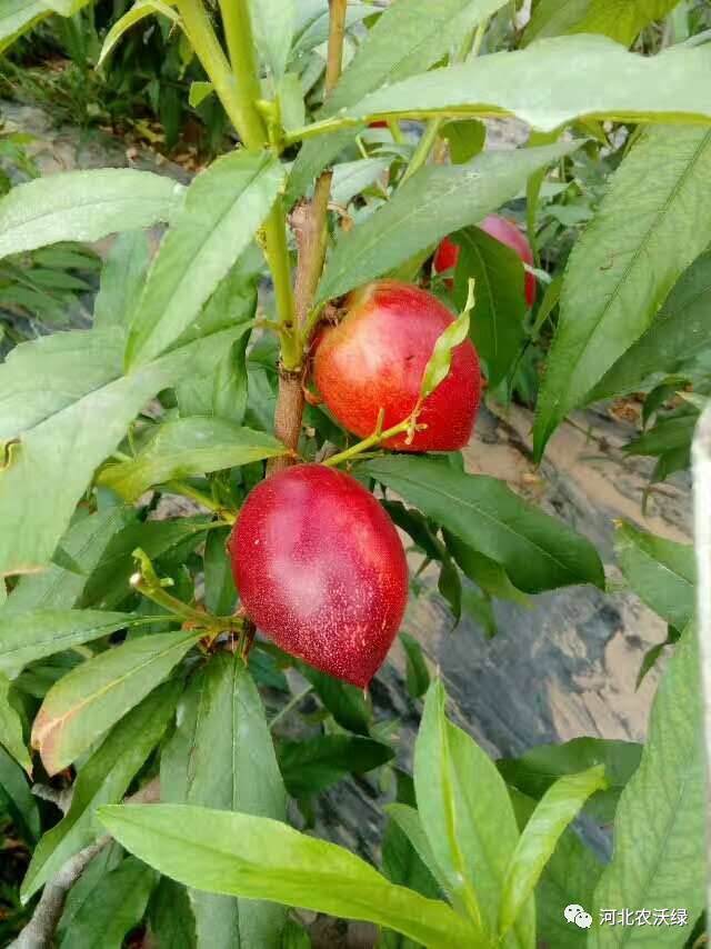 農(nóng)沃綠配方施肥標(biāo)準(zhǔn)田的未來(lái)一號(hào)油桃果面亮麗,全面著濃紅色,果實(shí)提早成熟10天左右,單果重在200g左右,果實(shí)口感甘甜,桃味濃郁。