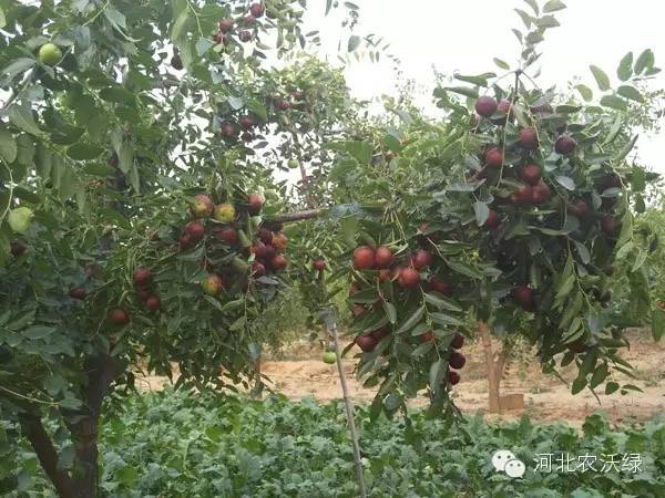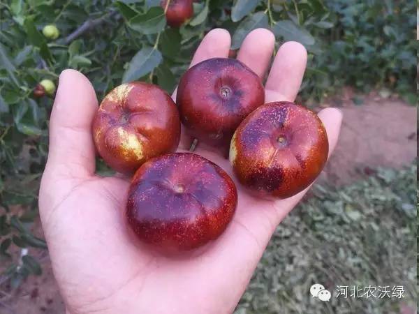 農(nóng)沃綠配方施肥標(biāo)準(zhǔn)田的中特一號(hào)大棗營(yíng)養(yǎng)豐富,果個(gè)大,掛果多,產(chǎn)量高。
